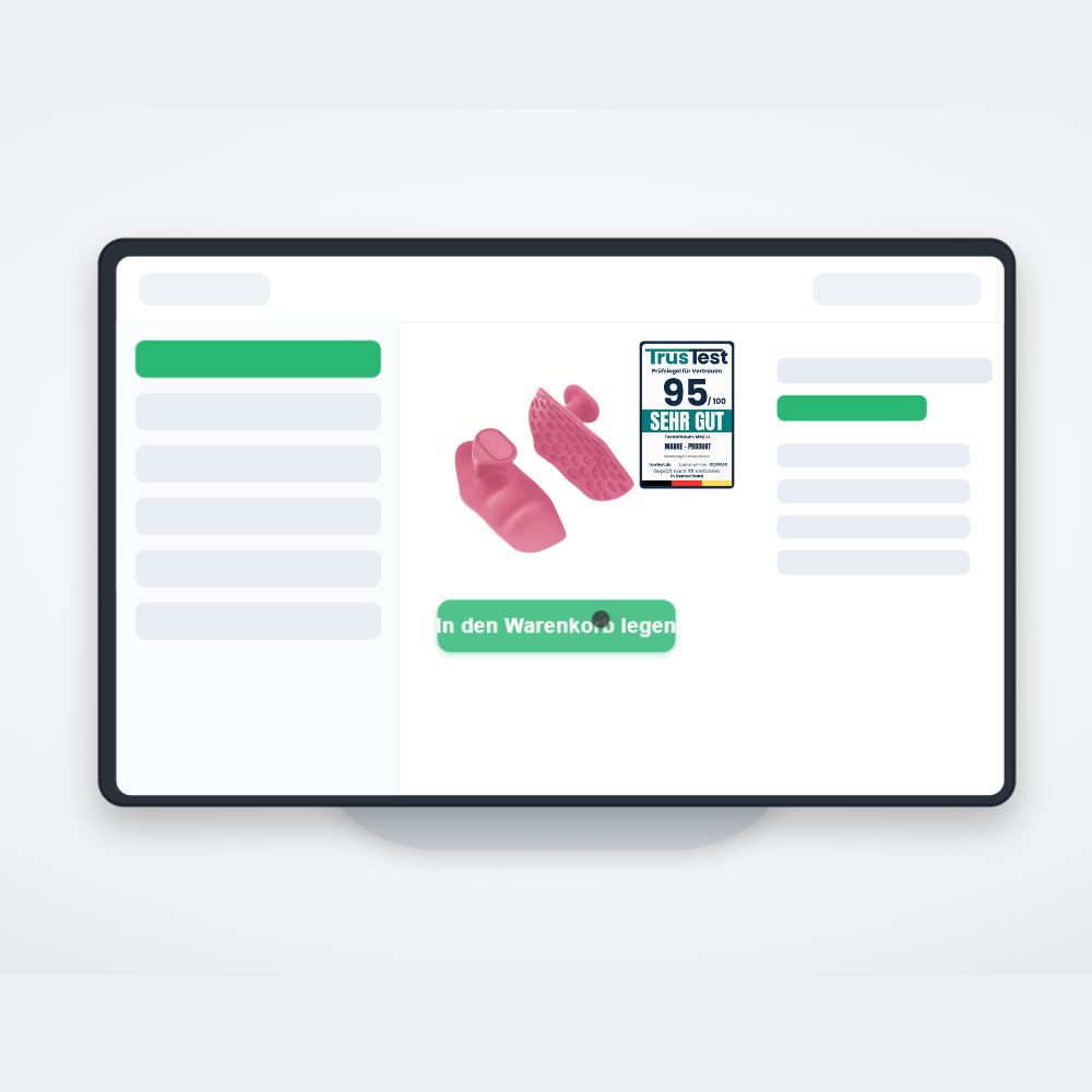 Das Prüfsiegel darf während der gültigen Lizenzdauer frei genutzt werden – z. B. in Ihrem Online-Shop, in Werbeanzeigen, auf Social-Media-Posts, Produktverpackungen, Printmaterialien oder Händlerunterlagen.